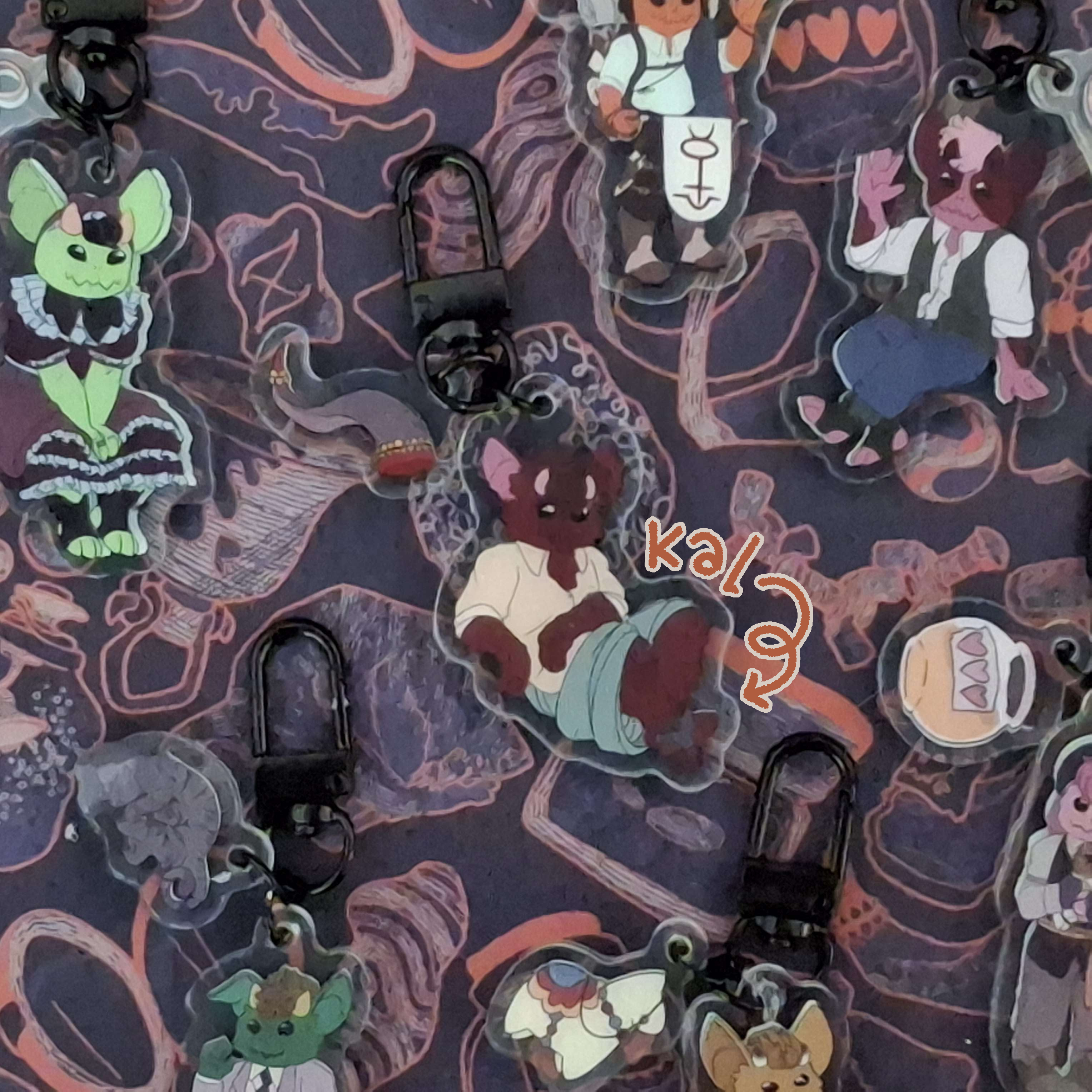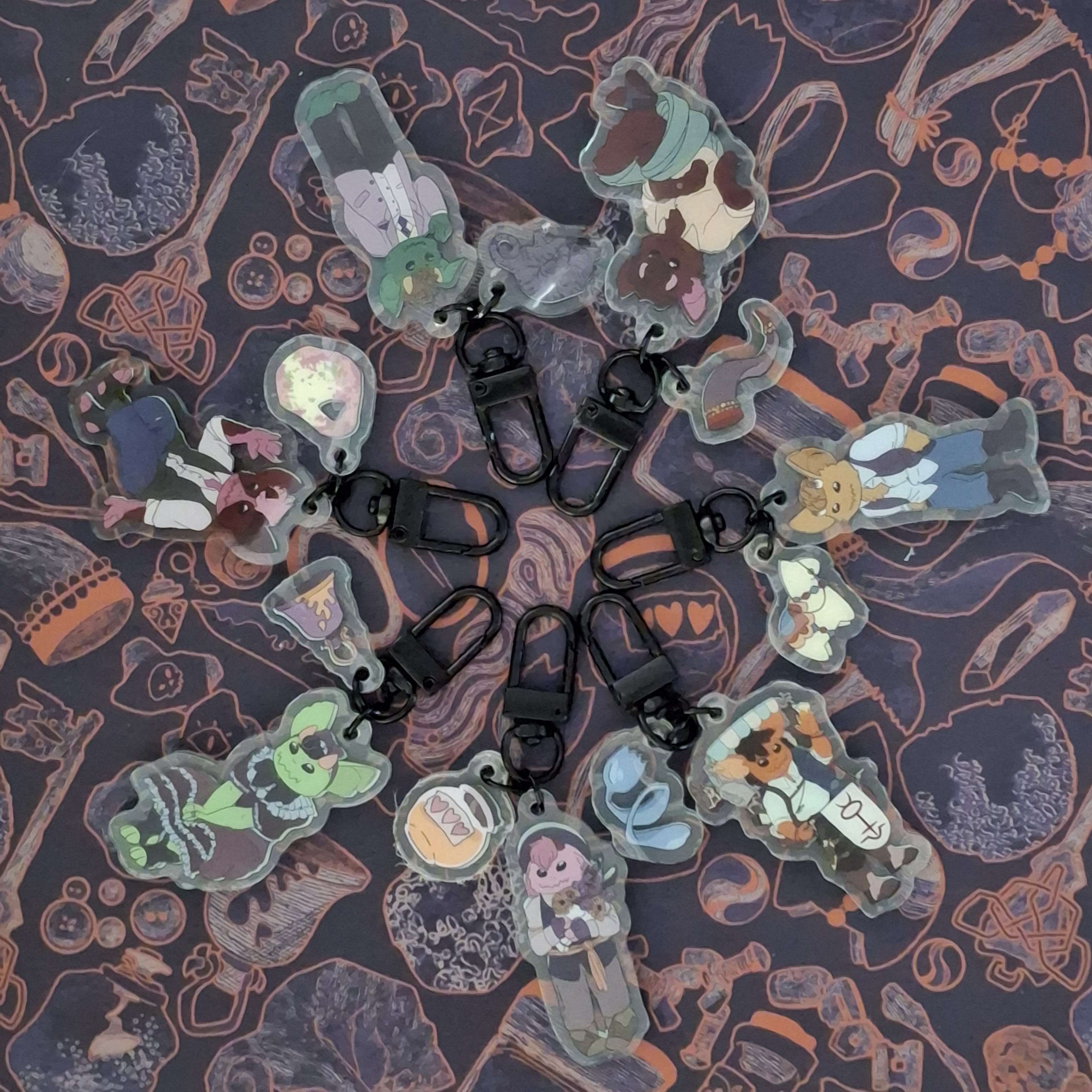 Well, regardless, I bring you a plethora of 2 inch, 100% recycled acrylic keychains—seven, to be exact! That's seven whole Goblins and their most beloved trinkets, made available to add to your most used set of keys. Who knows, maybe you'll end up with that army, after all.