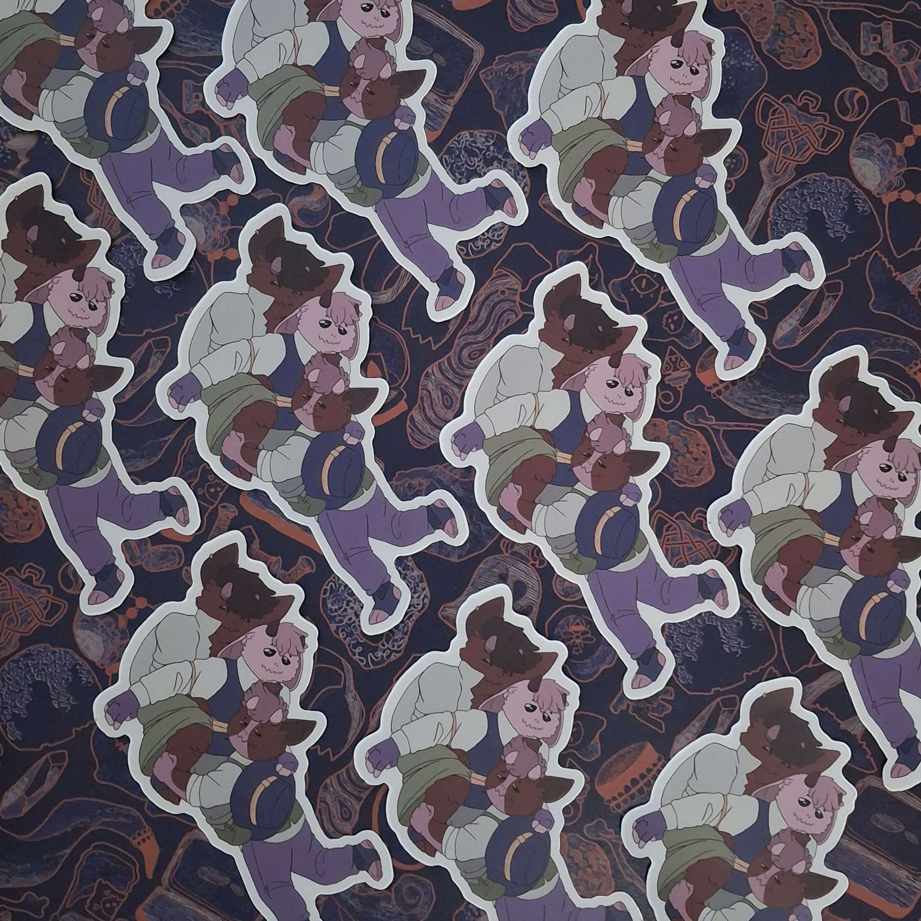 Each sticker is 2"x4", made of vinyl and can be stuck to just about anything, including, but not limited to: the back of your parents' car, hydroflasks, phone cases, laptops, your preferred gaming console, and sketchbooks.