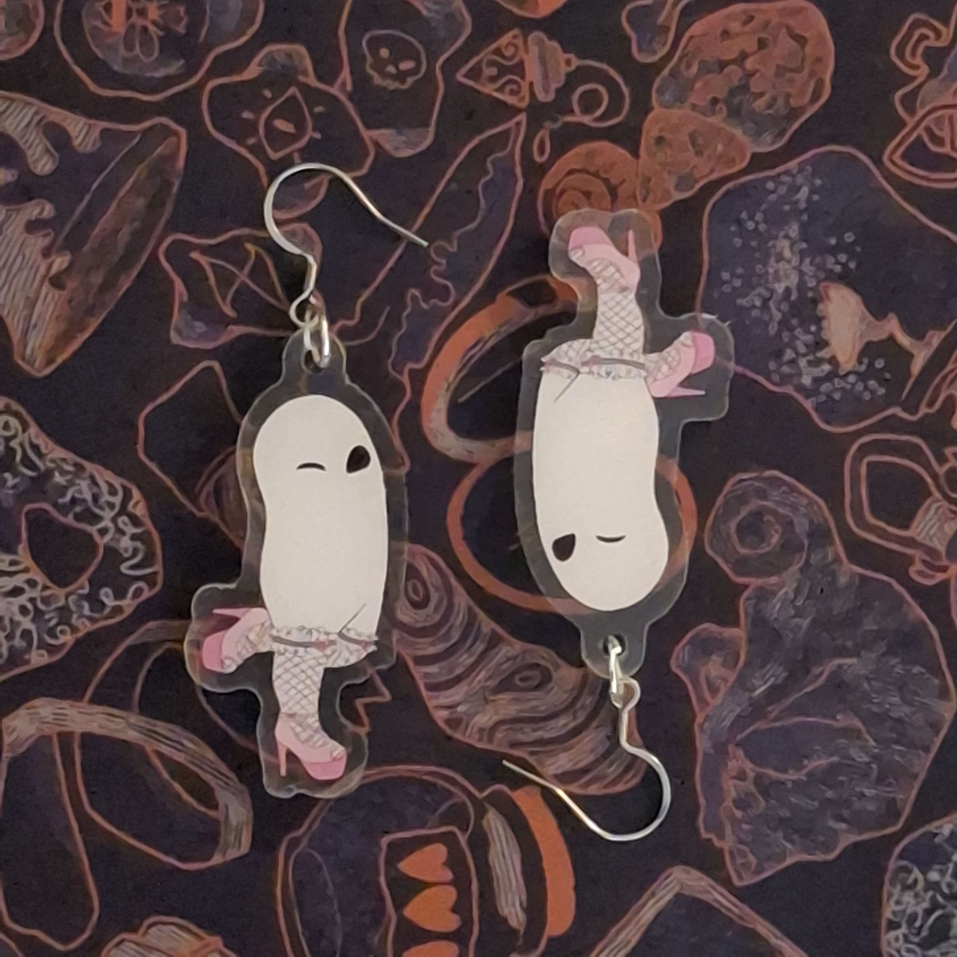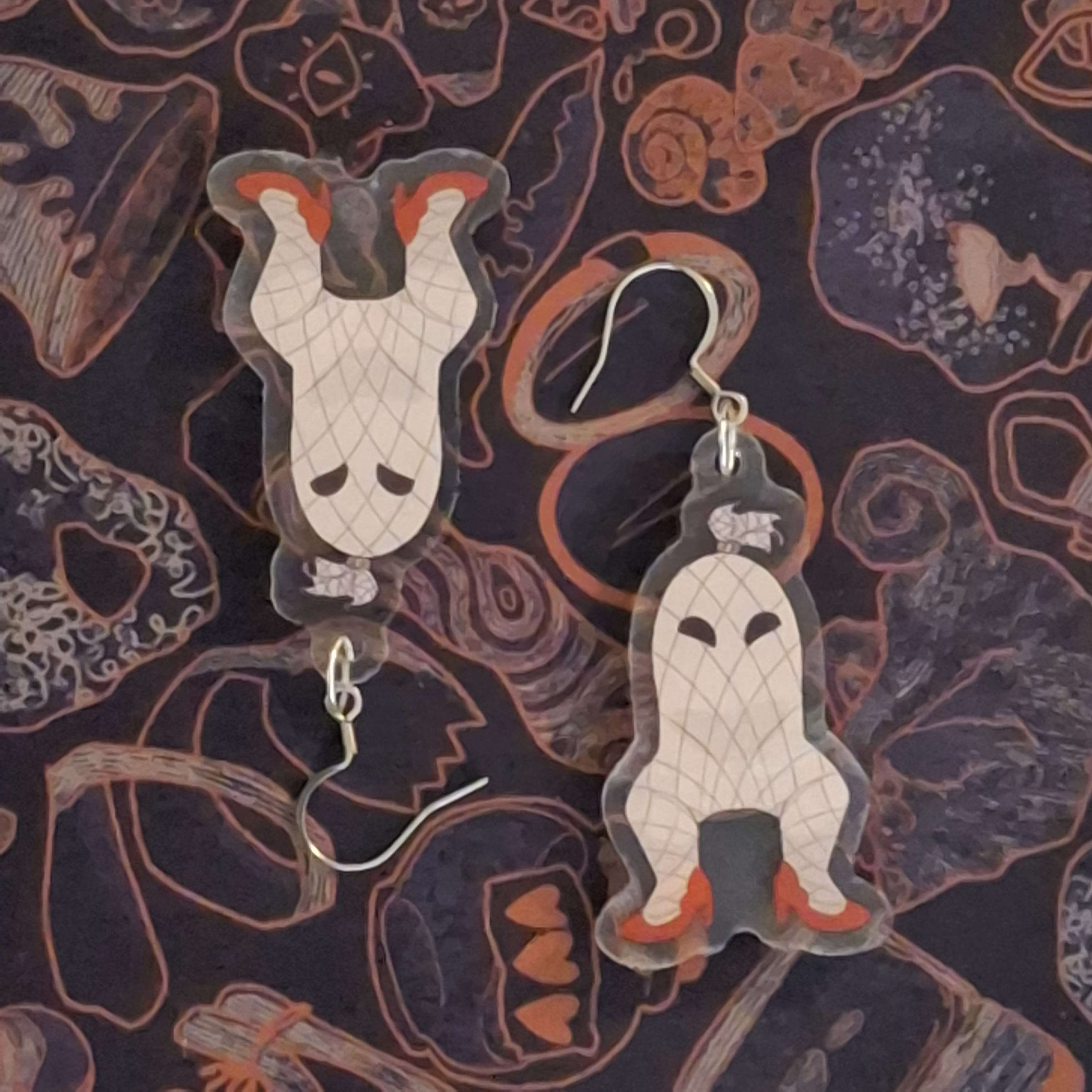 If you're looking for ways to spice up your sense of style while also advertising that you think cryptids are super cool, you've come to the right place. For it is here that I shall humbly offer you my finest selection of Fresno Nightwalker earrings. Up for offer are Roper, Peep, Slips and Nettie. These earrings may be bought in pairs, singles, or mixed and matched, if you're having a hard time choosing.