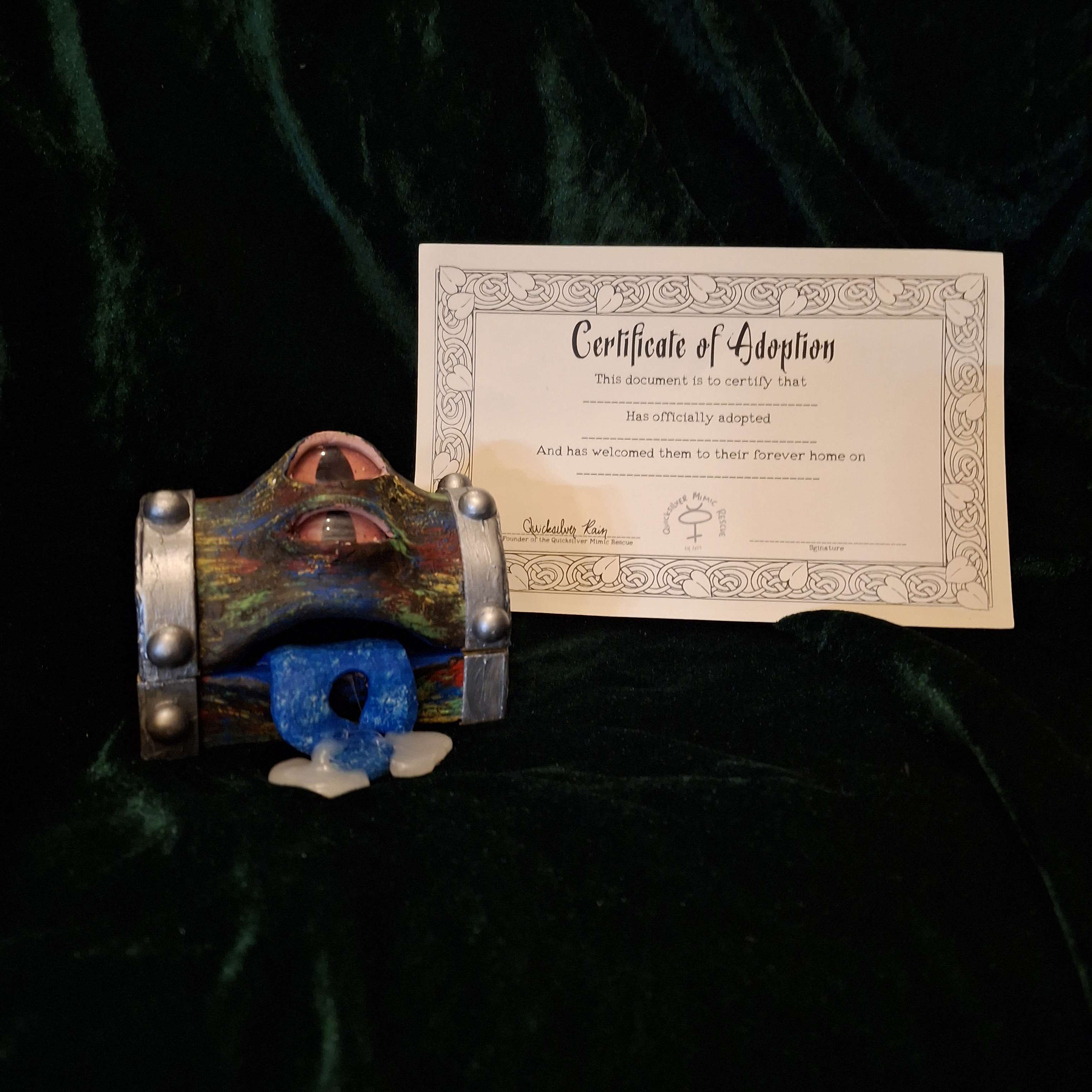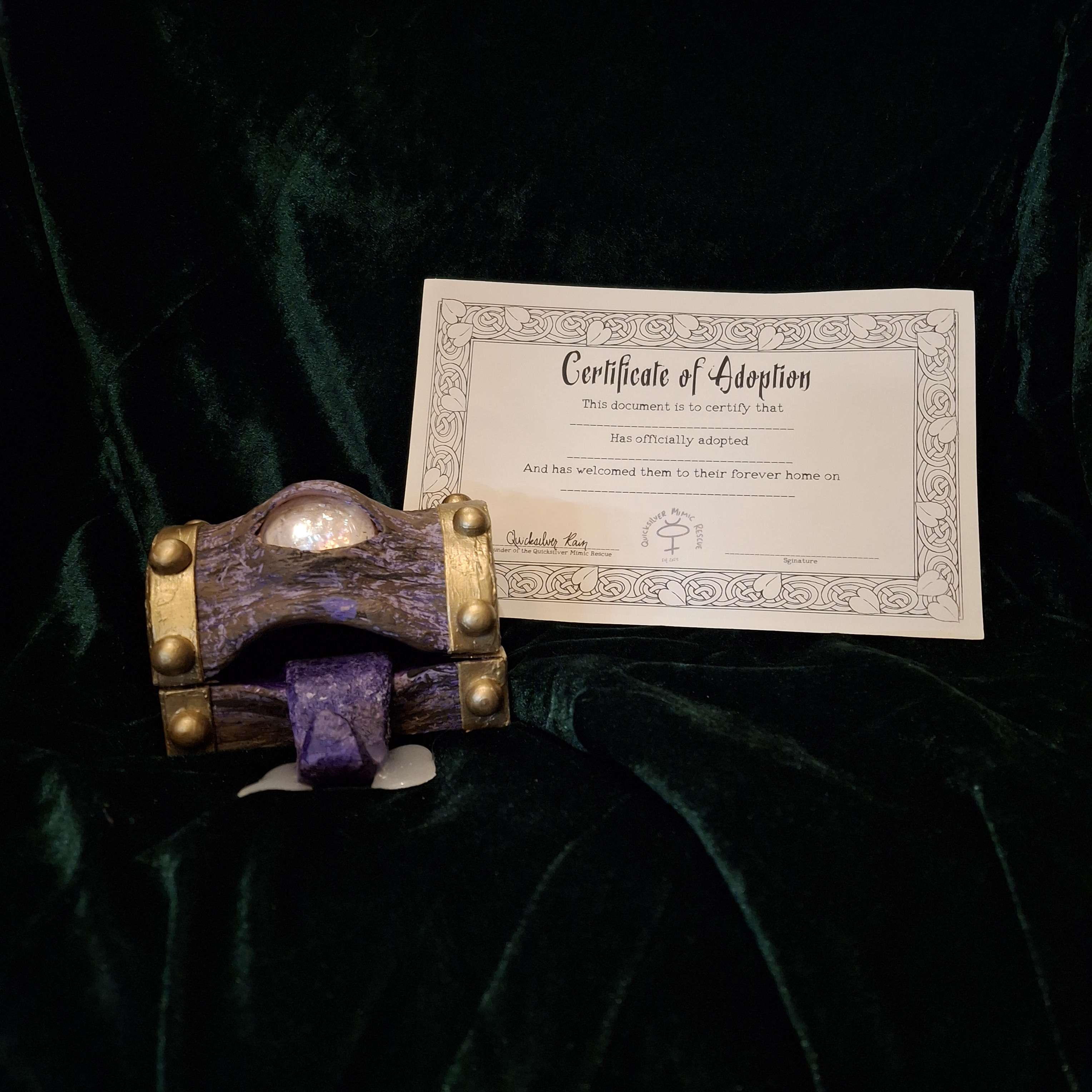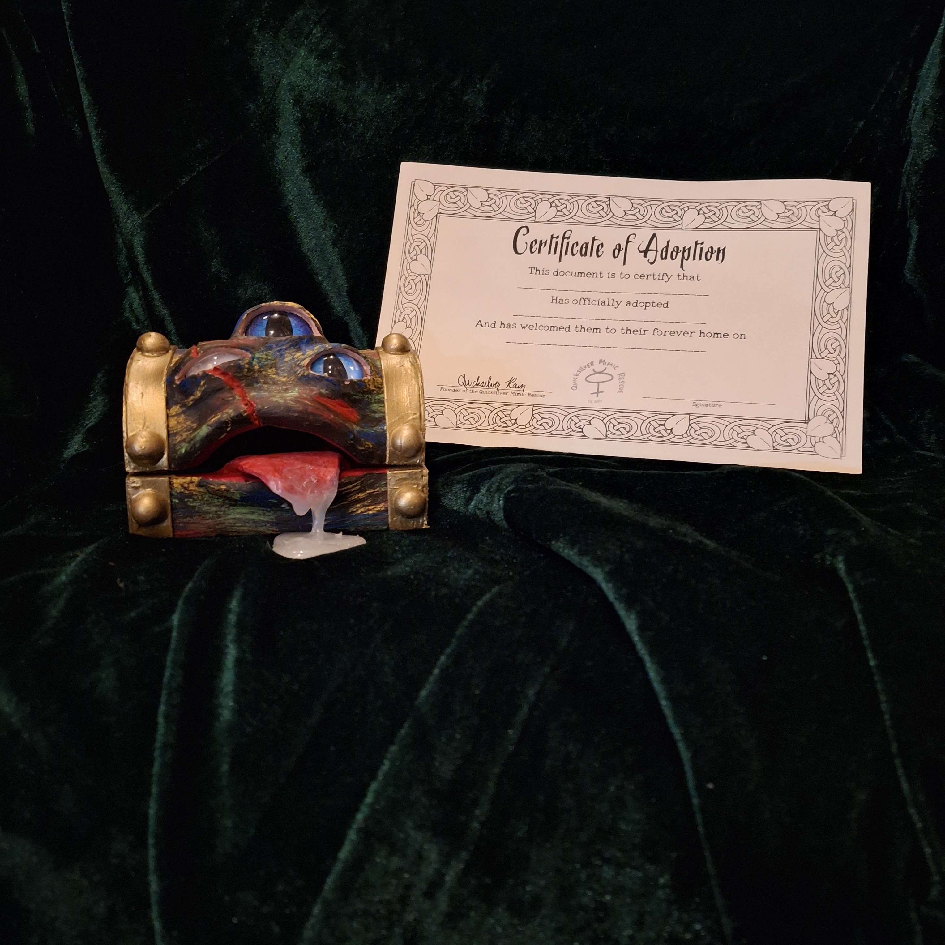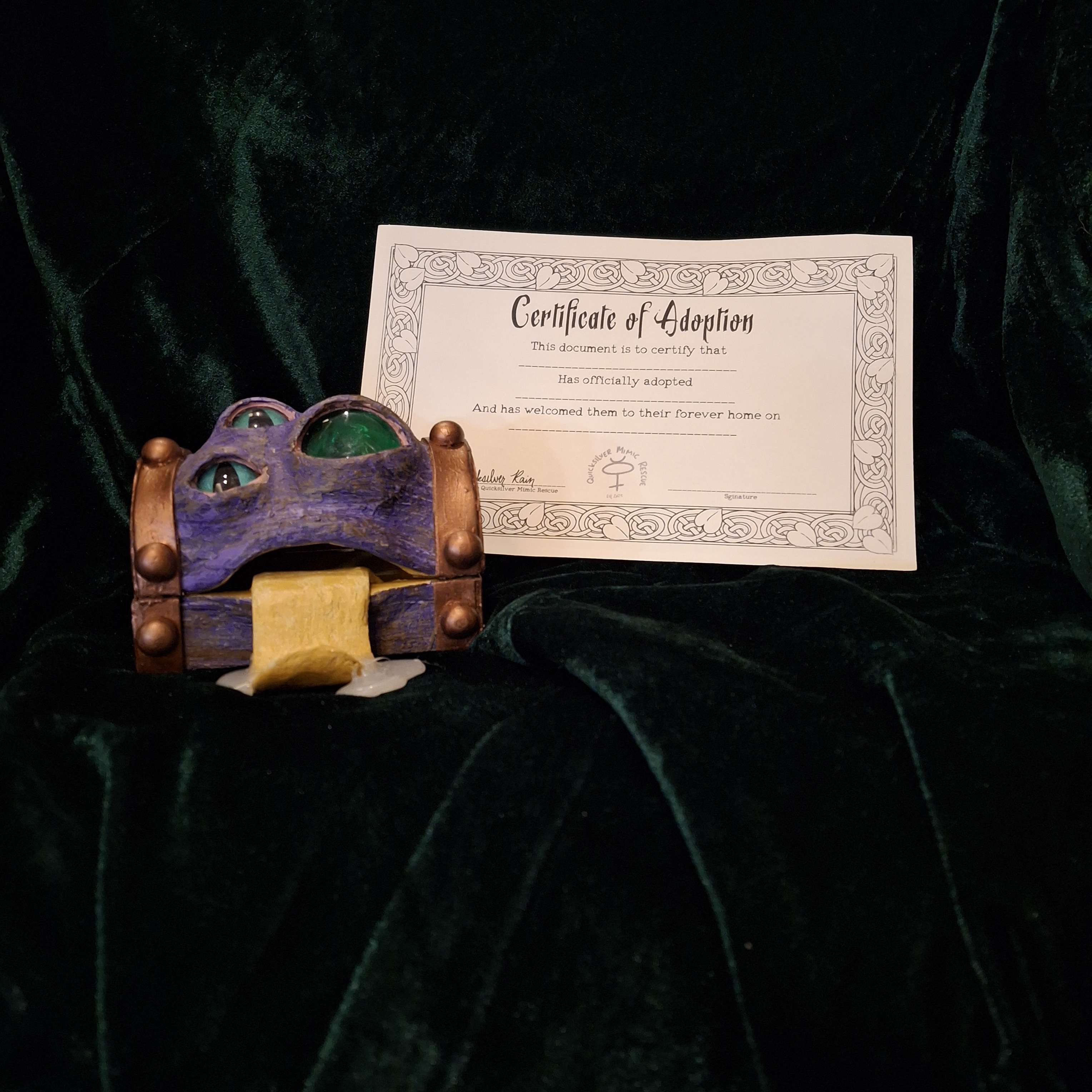 All adopted Mimics come with a certificate of adoption.